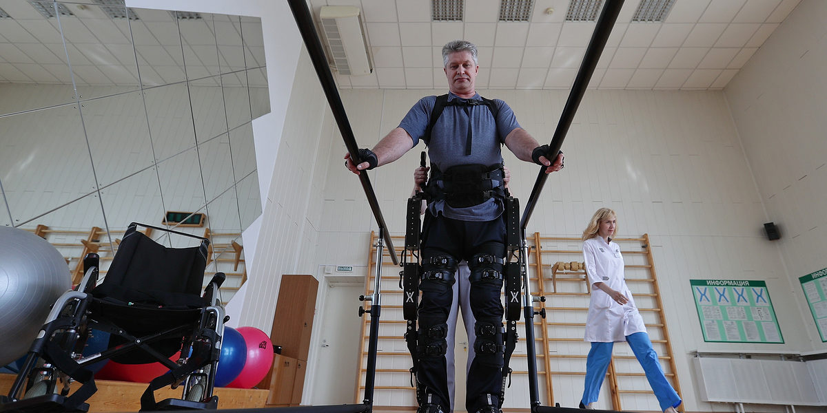 «Железный костюм» — это медицинский экзоскелет. Сегодня это самая новая разработка для реабилитации людей с опорно-двигательными нарушениями. Экзоскелет считается медицинским роботом: его «мозг» — программа, которая управляет ногами-латами так, чтобы они создавали человеческий шаг. Зачем он нужен? Если человек сможет начать ходить самостоятельно, экзоскелет ускорит этот процесс. Если травма безнадежная, он все равно нужен пациенту, чтобы поддерживать мышцы и суставы в тонусе. Для правильного кровообращения тоже нужно принимать вертикальное положение.