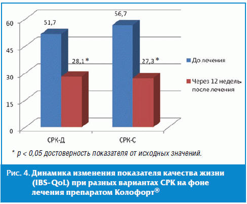 эффекты препарата Колофорт® при разных клинических вариантах СРК.