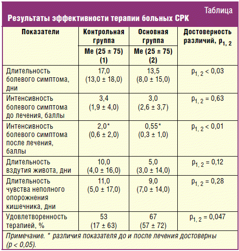 процессе терапии, так и интенсивности абдоминальной боли.