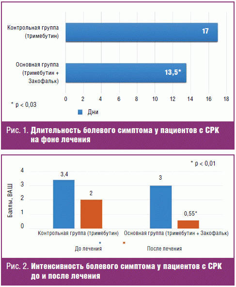 спазмолитиком (тримебутин в дозе 200 мг 3 раза в день) на интенсивность болевого