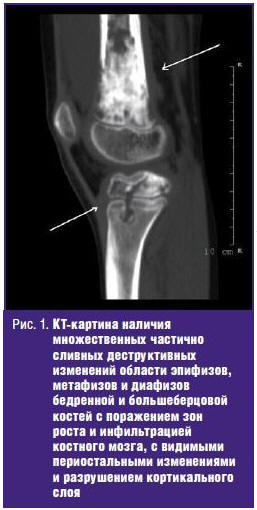 также раннее развитие очагов костной деструкции являются основными признаками