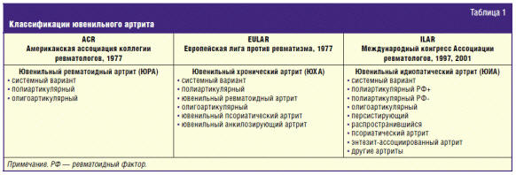 League of Associations for Rheumatology, ILAR, 2001, 2004), ЮИА включает